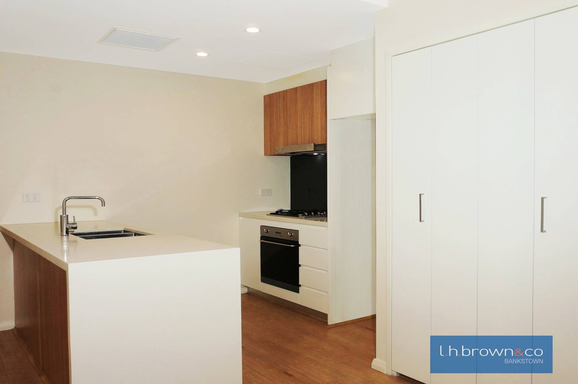 Opposite ALDI super market. This first floor modern 2 bedroom apartment features big sized bedrooms, built-ins, laundry, modern bathroom, modern open plan living,  gas cooking kitchen, spacious lounge/ dining, super sized balcony, timber/ carpeted floors, basement parking. Air Conditioning. Close to Bankstown shopping and all amenities.